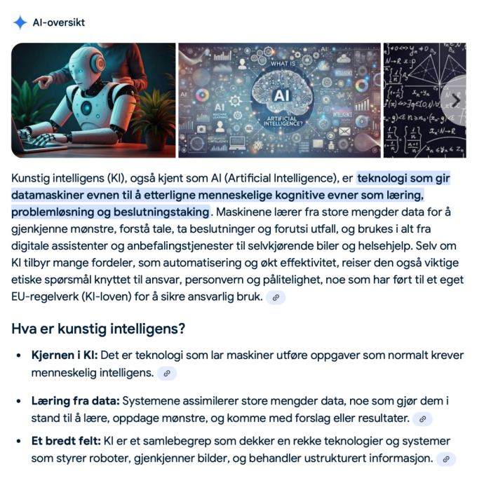 Hva er så Artificial Intelligence eller Kunstig Intelligens? Ingen er kanskje bedre til å forklare dette enn AI selv.