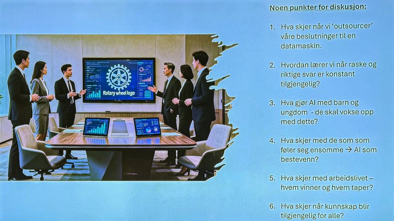 Første foredragsholder i dette rotaryåret var det vår nye husvert fra Dale Oen Academy som tok seg av. Han heter Per Kristian Bratholm og er den daglige lederen for avdelingen i Ålesund.
