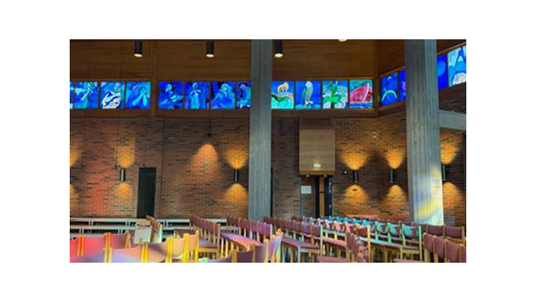Onsdag 22. april fikk klubben besøke Spjelkavik kyrkje der Britt Walle Ekroll fortalte om glassmaleriene til Håkon Bleken.